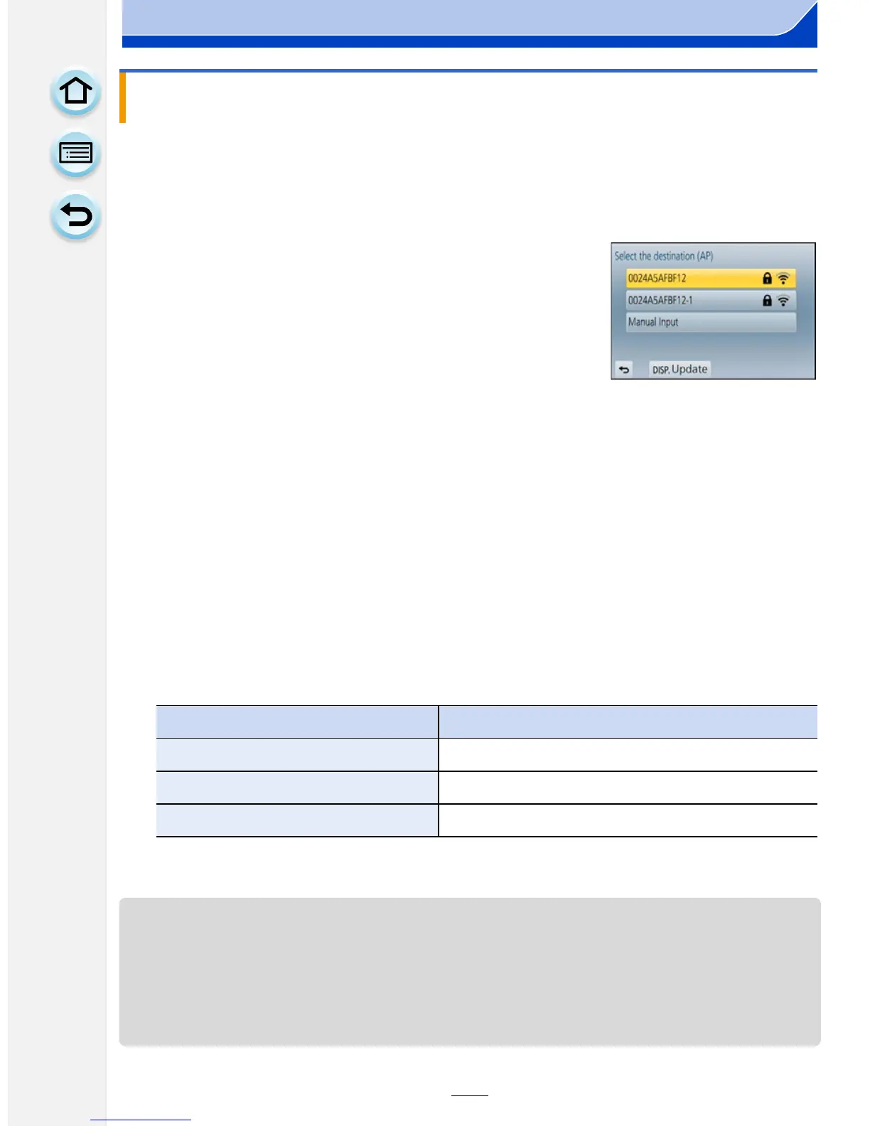 • When connecting by [Manual Input], confirm SSID, encryption type, encryption key of the