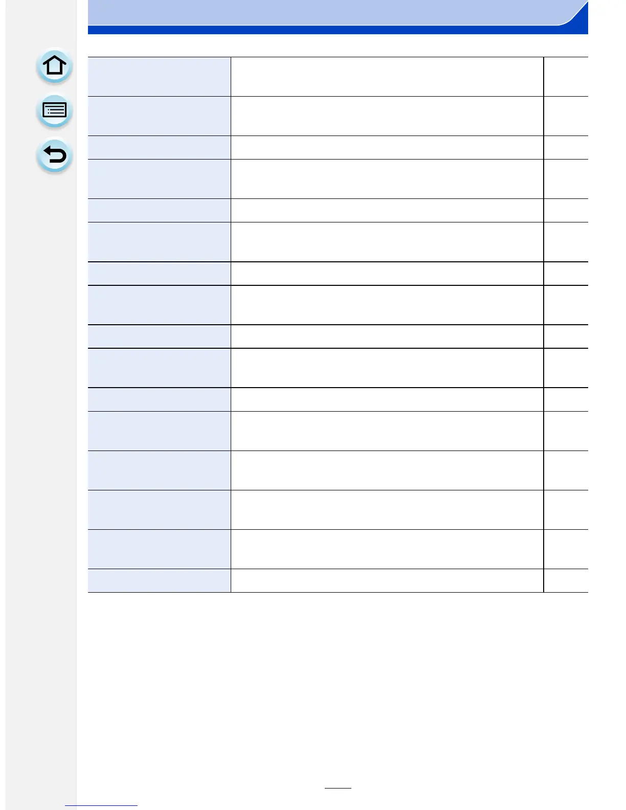 Descriptions of menu items or their settings are