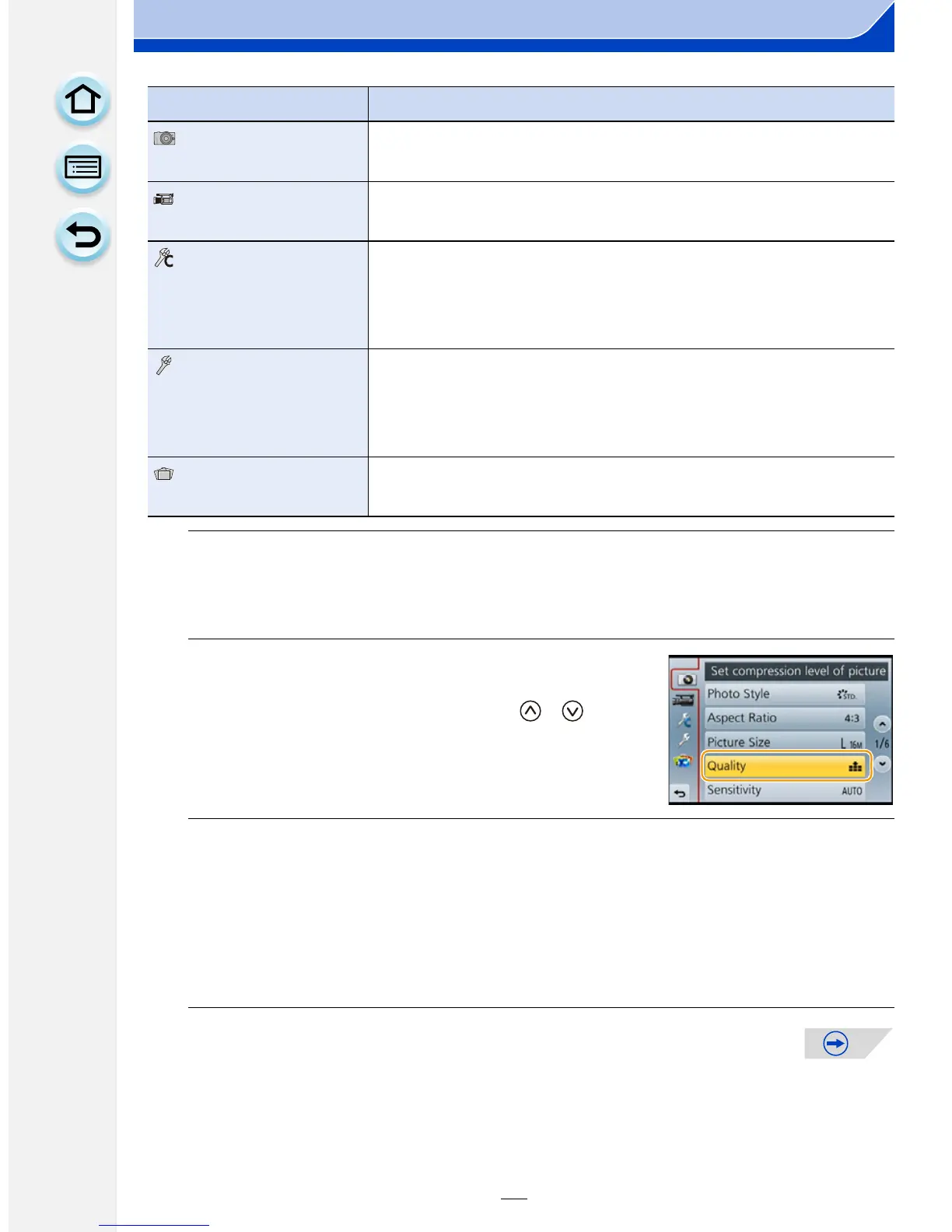 This menu lets you set the [Rec Format], [Rec Quality], and