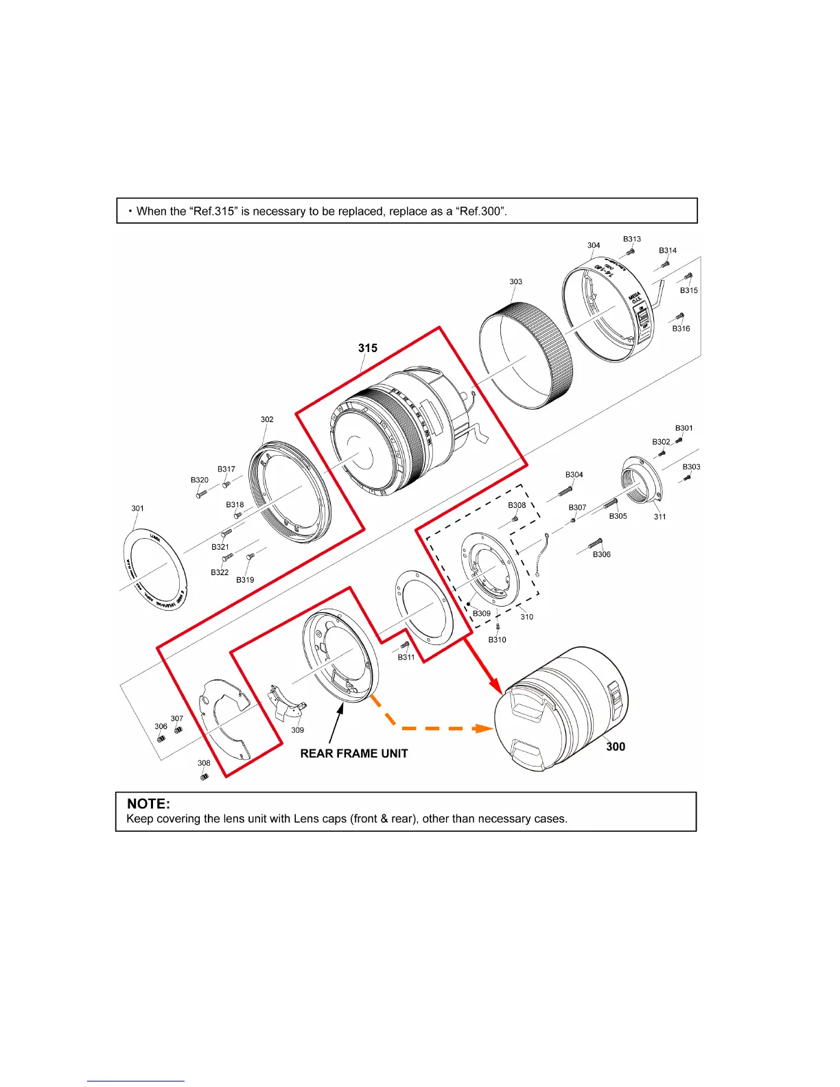 1. LENS MAIN BLOCK UNIT (Ref. 315) is not supplied due to difficulty of the transportation issue (Fragile, Dust-free packing),