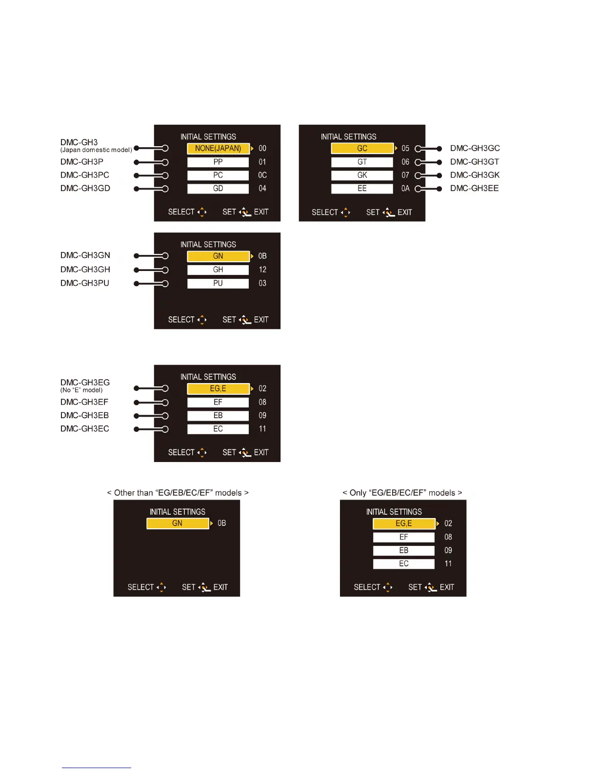 • Step 5. Choose the model suffix in “INITIAL SETTINGS”: (Refer to “CAUTION”)