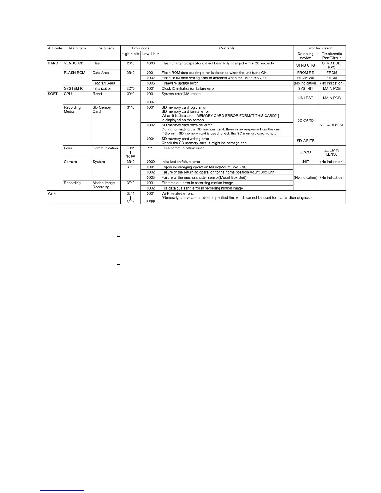 The error code consists of 8 bit data and it shows the following information.