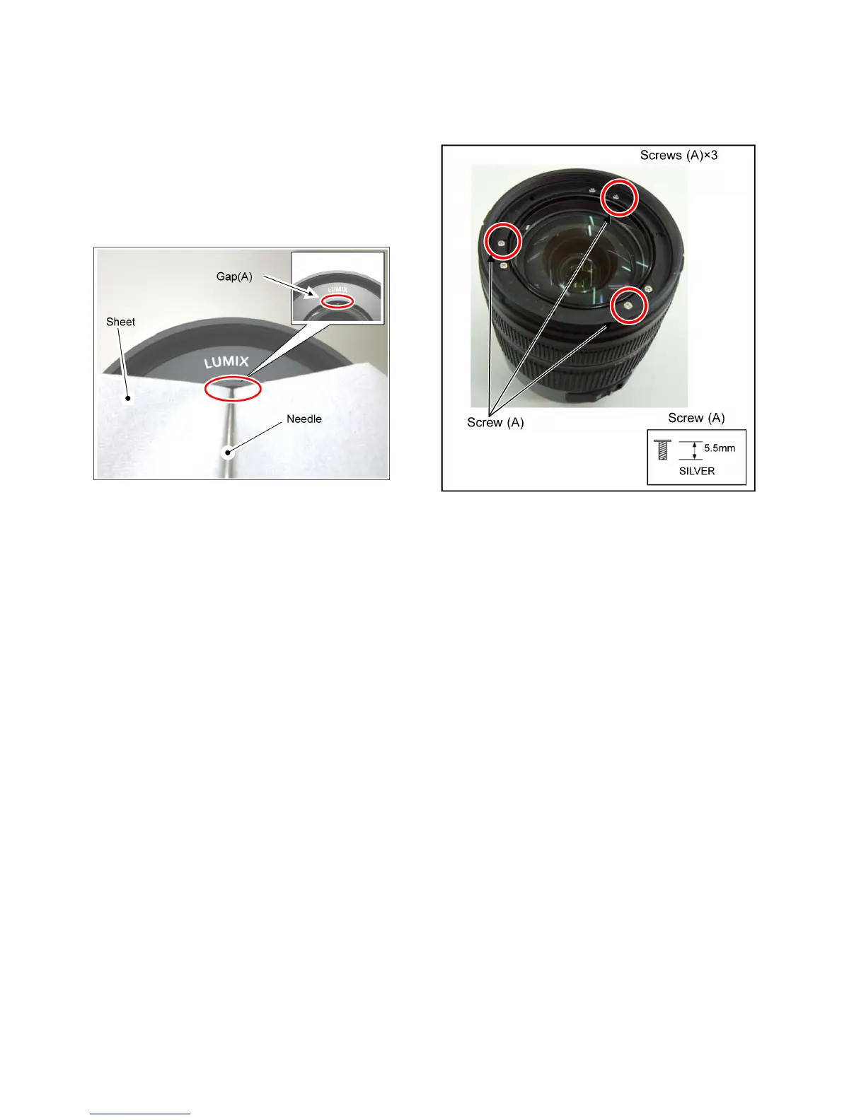1. Remove the 3 screws (A) and then remove the 1st lens