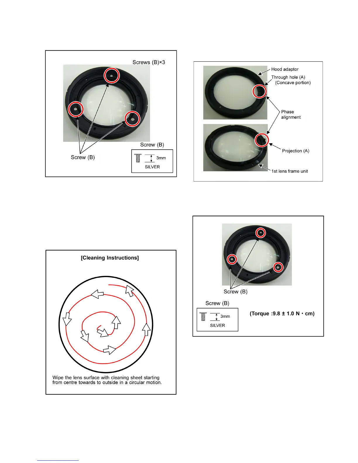 2. Tighten the 3 screws (B) by using torque driver with spec-