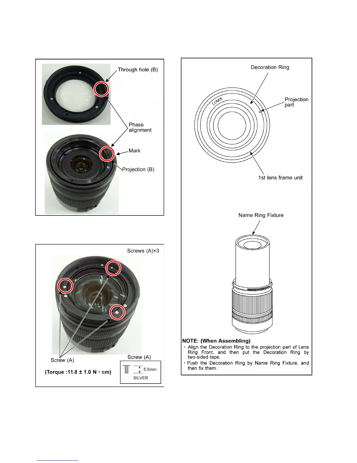 1. Install the 1st lens frame unit onto the lens unit to meet