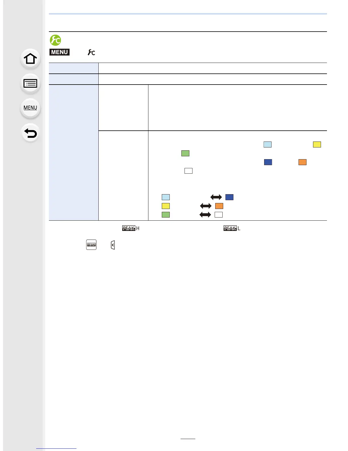 • Each time the set function button is pressed when [Peaking] is set to [Fn Button Set] (P317) in