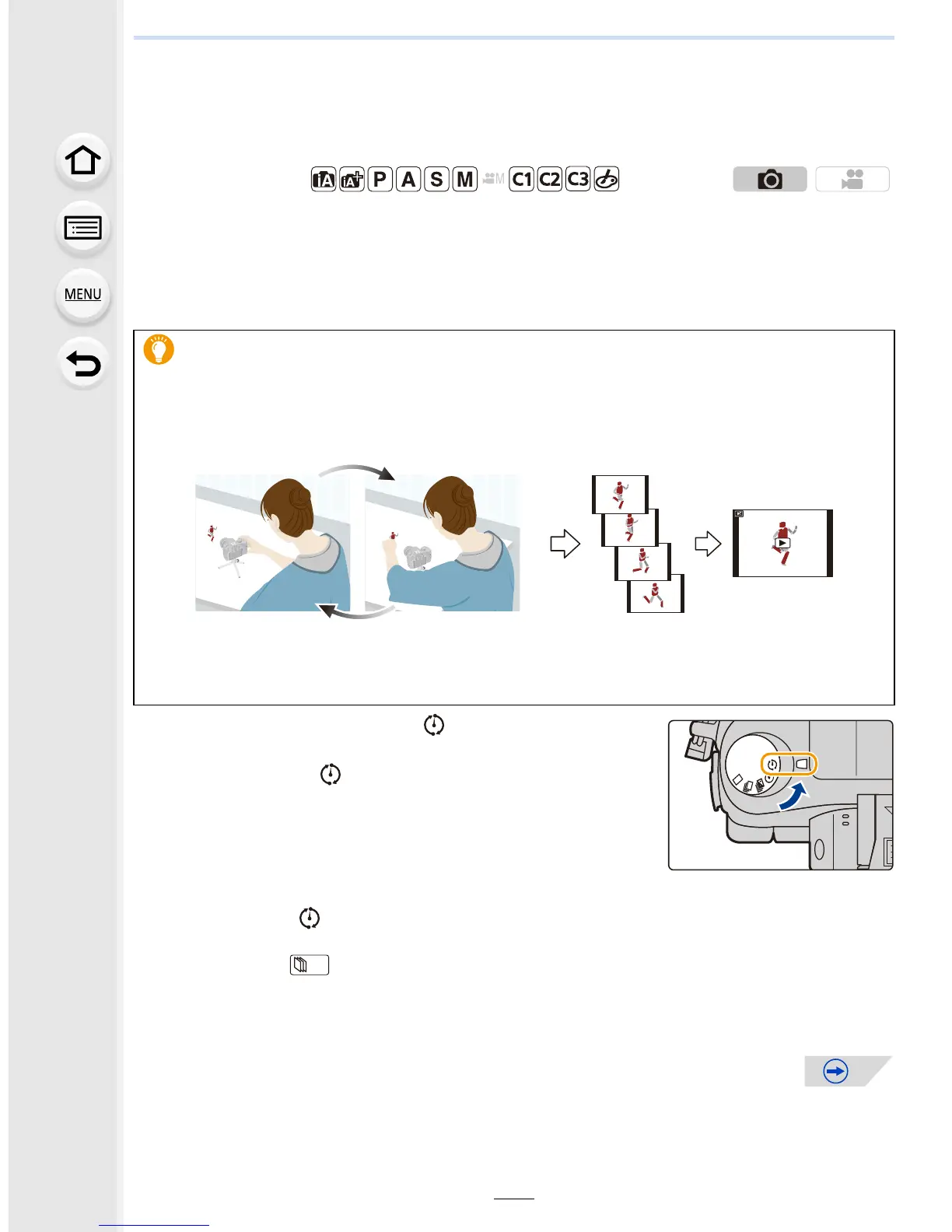 mode dial to [ ]. In other cases, the camera operates as usual, displaying the menu
