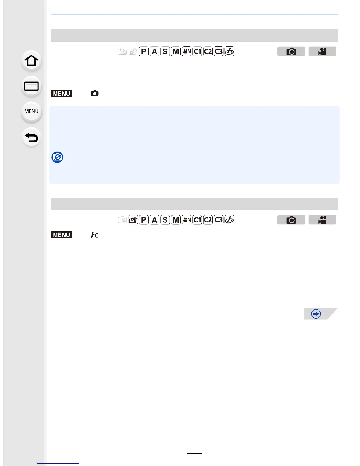 • Those menu items are shared by the [Rec] menu and the [Motion Picture] menu. When the