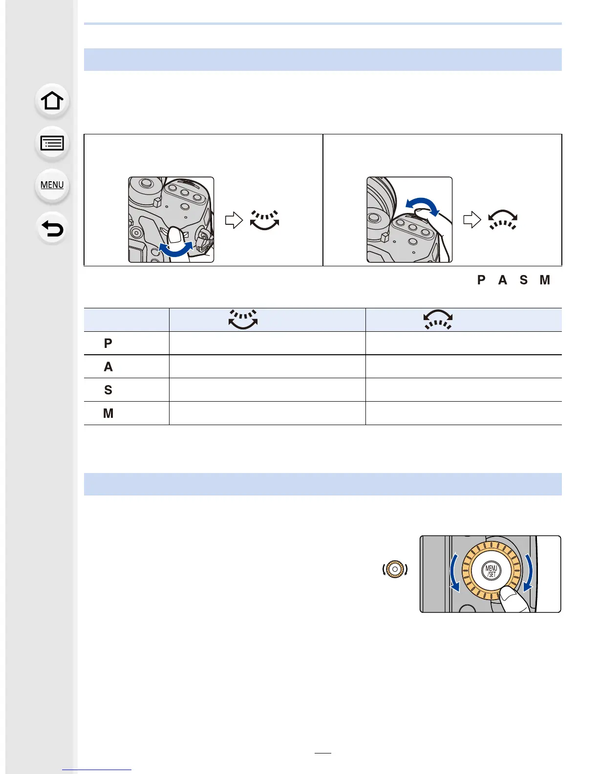Example: When rotating the control dial to the left or right: