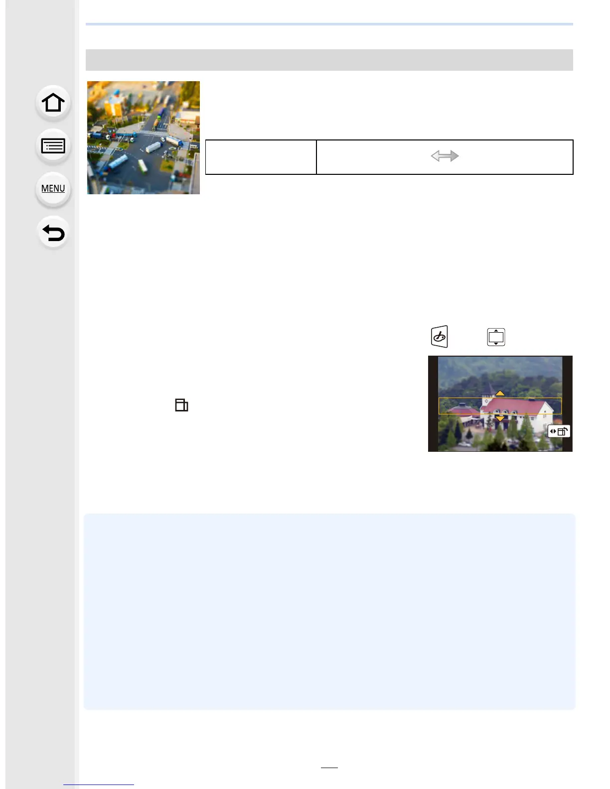 With [Miniature Effect] you can make the subject stand out by intentionally creating