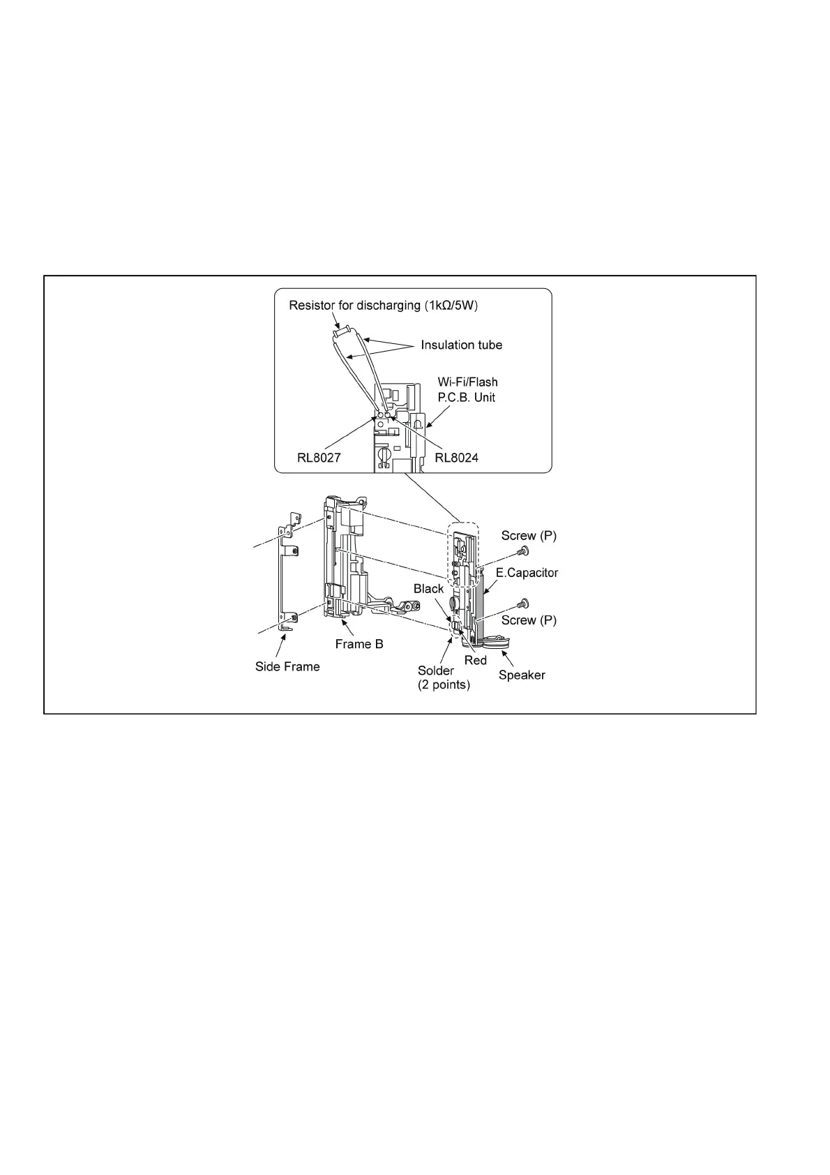 • Be sure to discharge the E.Capacitor on Wi-Fi/Flash P.C.B. Unit before disassembling.