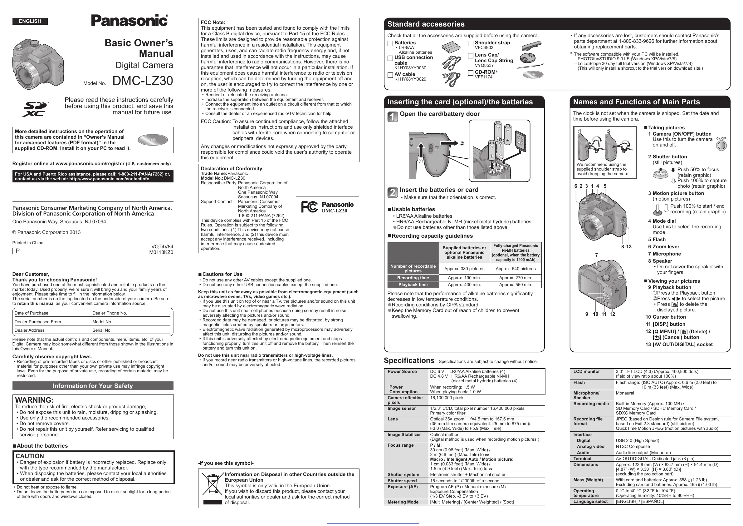 Register online at www.panasonic.com/register (U.S. customers only)
