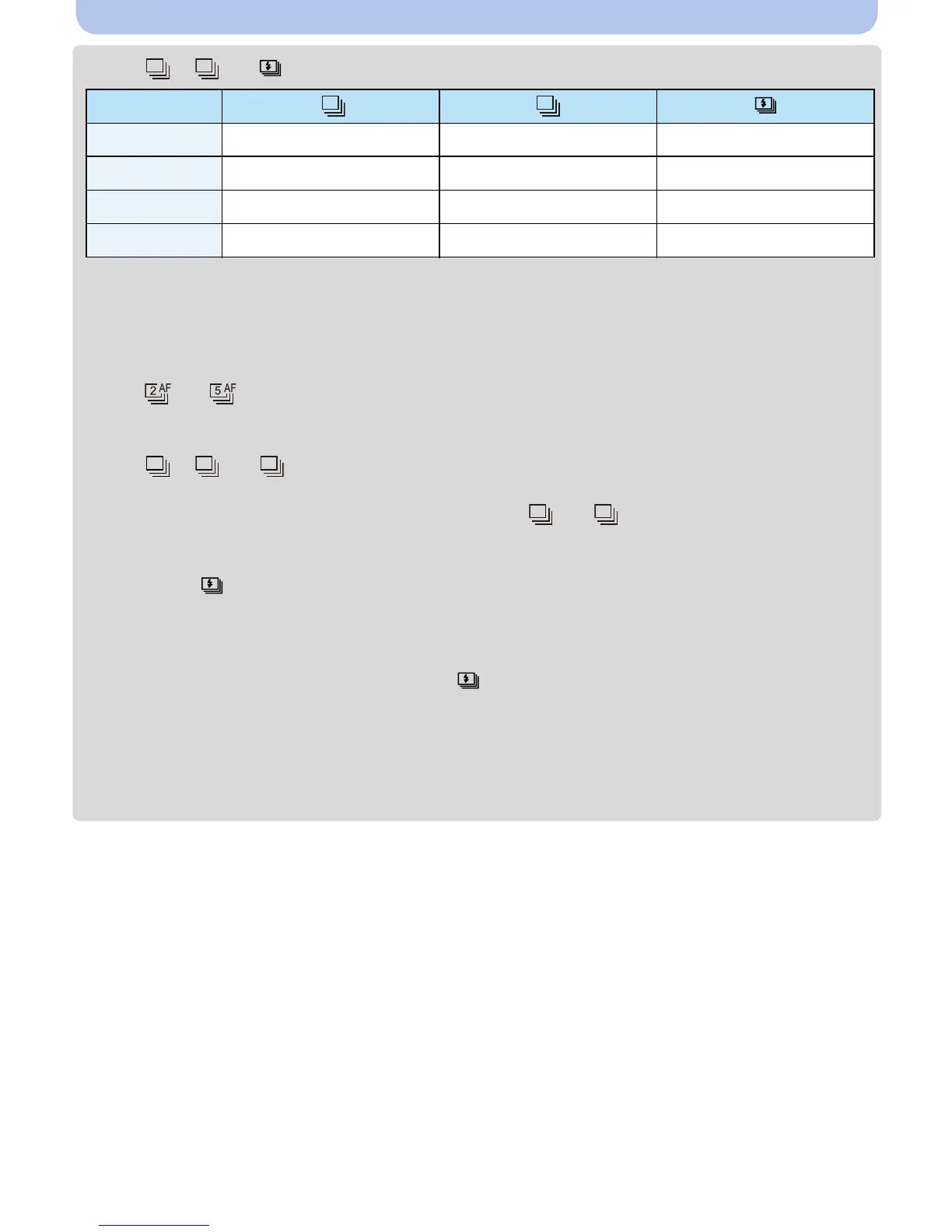 • The burst speed (pictures/second) may become slower depending on the recording environment