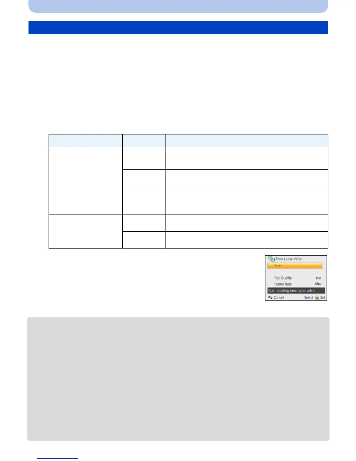 • When recording to the built-in memory, [Time Lapse Video] is not available.
