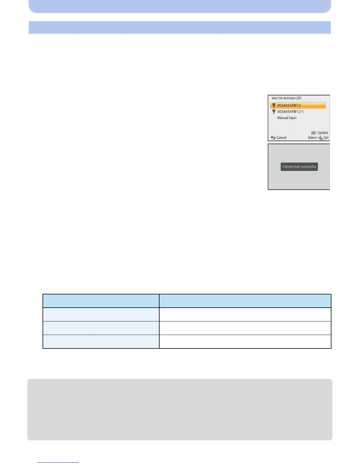 • When connecting by [Manual Input], confirm SSID, encryption type, encryption key of the wireless