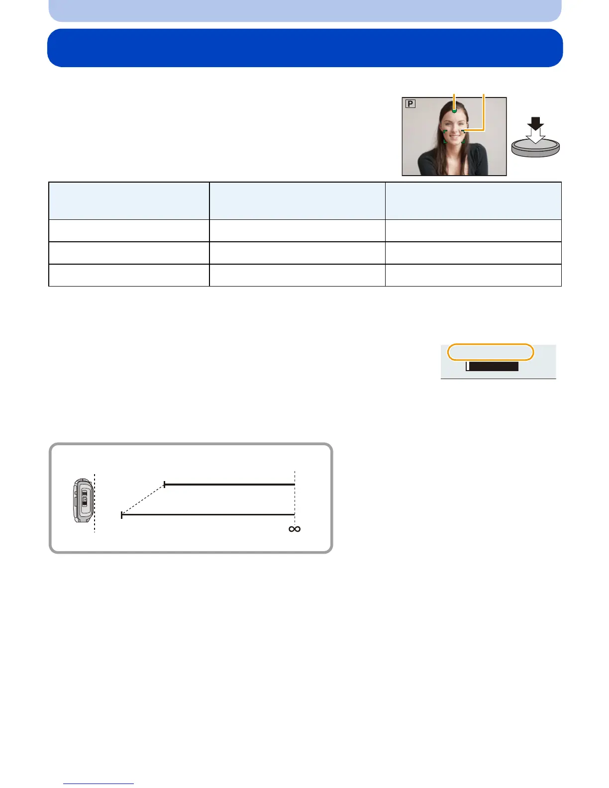 e.g.: Range of focus during the Intelligent Auto Mode