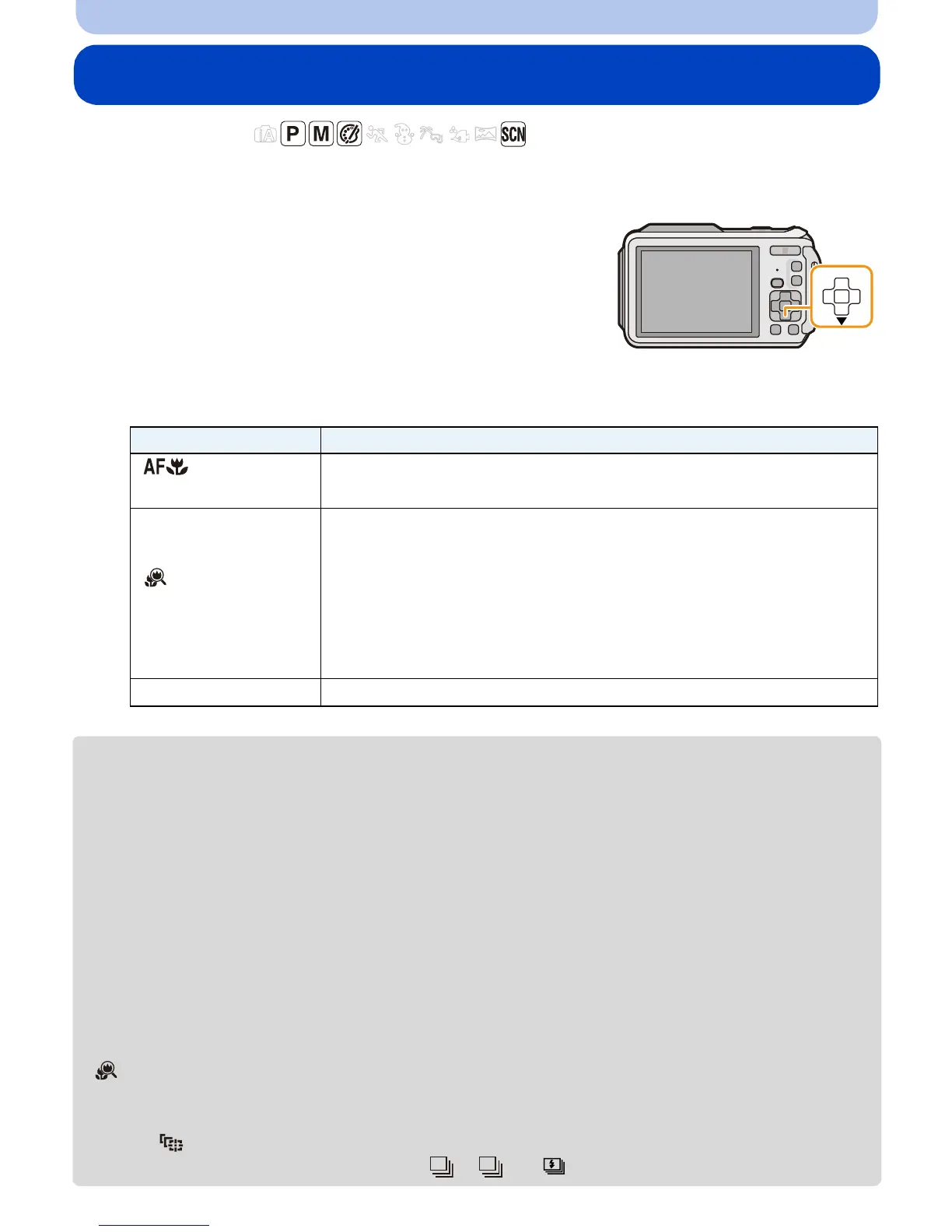 – When [ ] in [AF Mode] is set