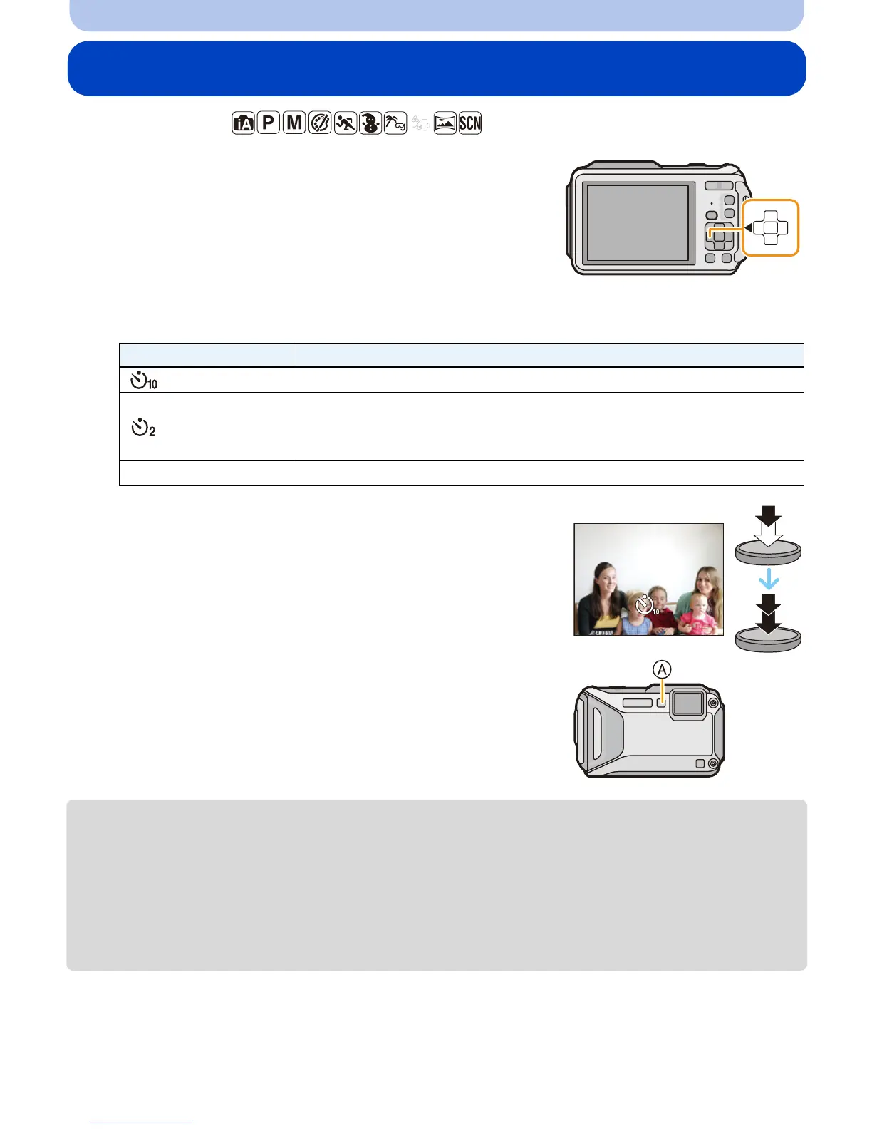 • The Self-timer indicator A blinks and the shutter is activated