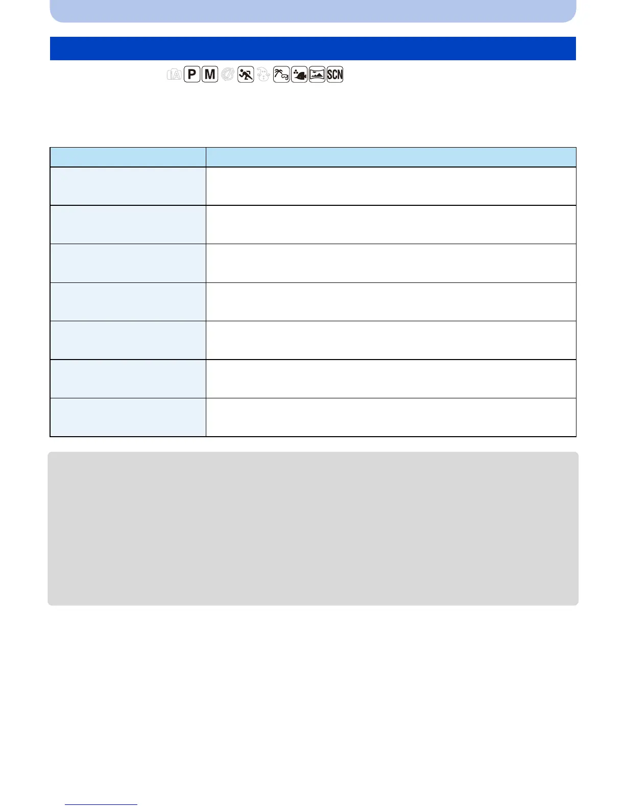 Balance setting for a Scene Mode returns to [AWB] when the Scene Mode is changed.)