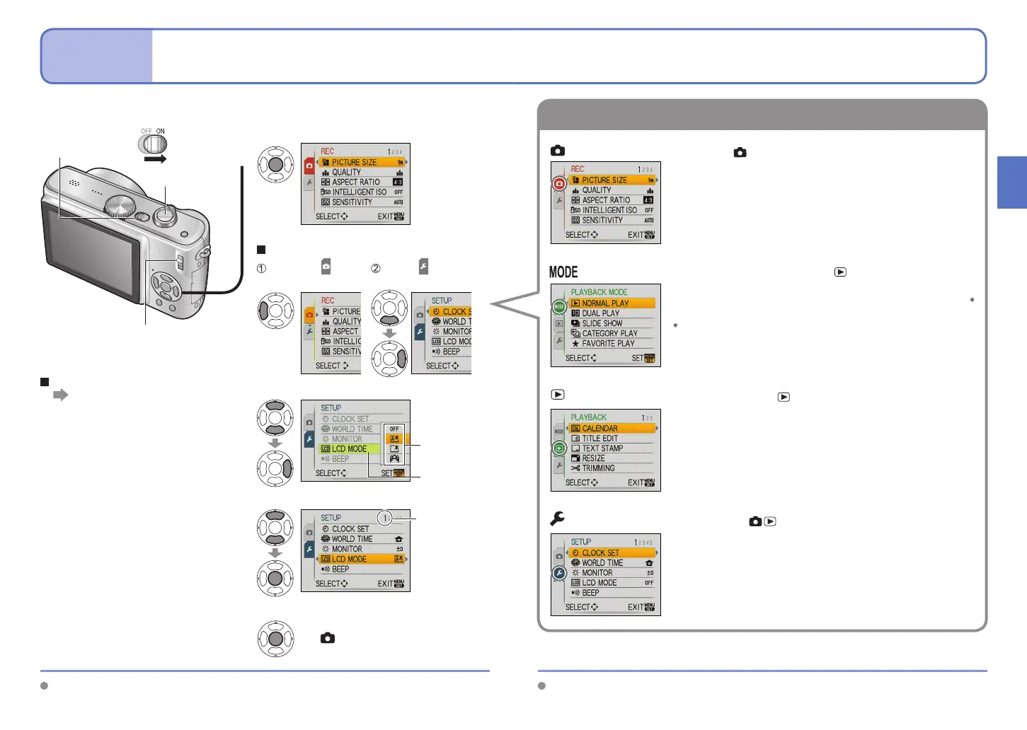 (Example) Change ‘LCD MODE’ in SETUP menu when in NORMAL PICTURE mode.