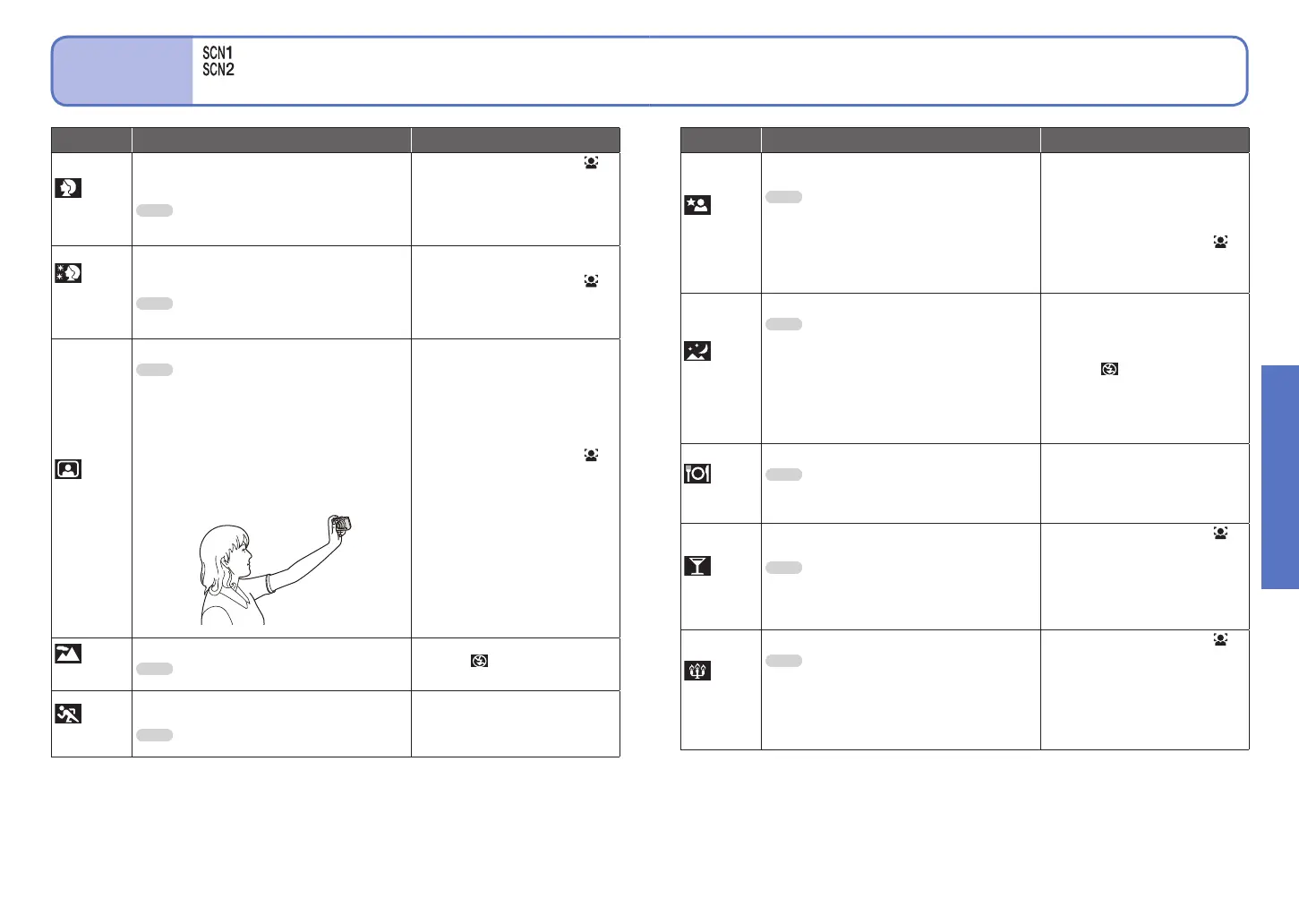 Take clear pictures of wide, distant subjects. • Main fixed settings