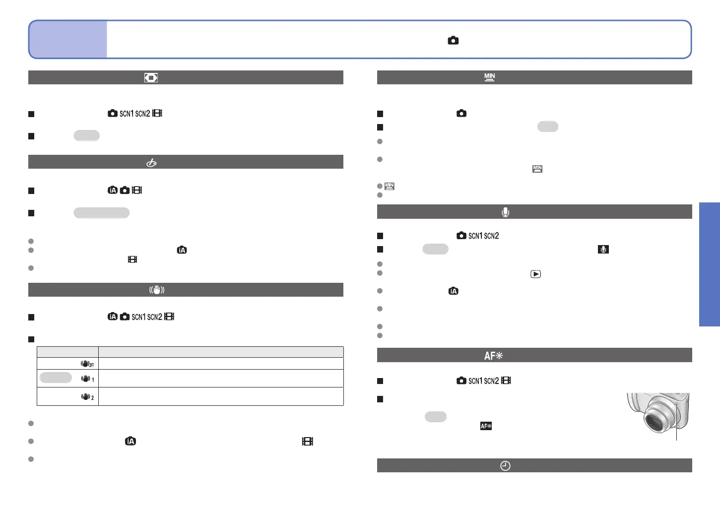 Set-up: Mode dial → Press ‘MENU/SET’ → Select ‘AF ASSIST
