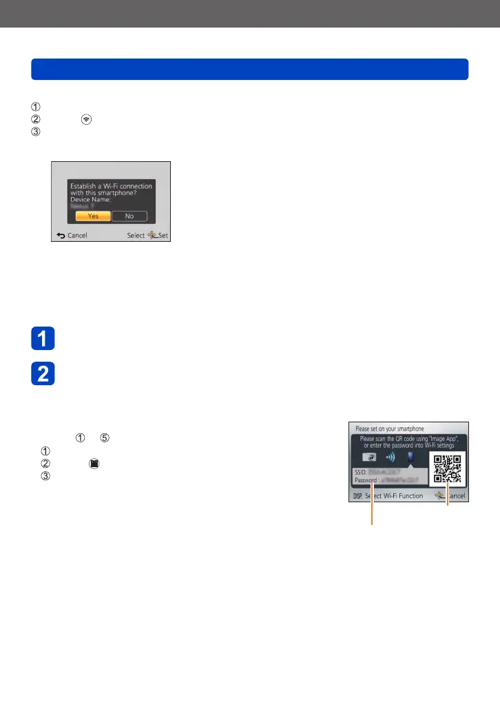 When [Wi-Fi Password] is set to [ON], operate the smartphone as indicated below.