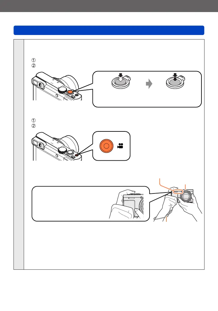 • To avoid camera shake, hold it with both hands keeping your arms close to your