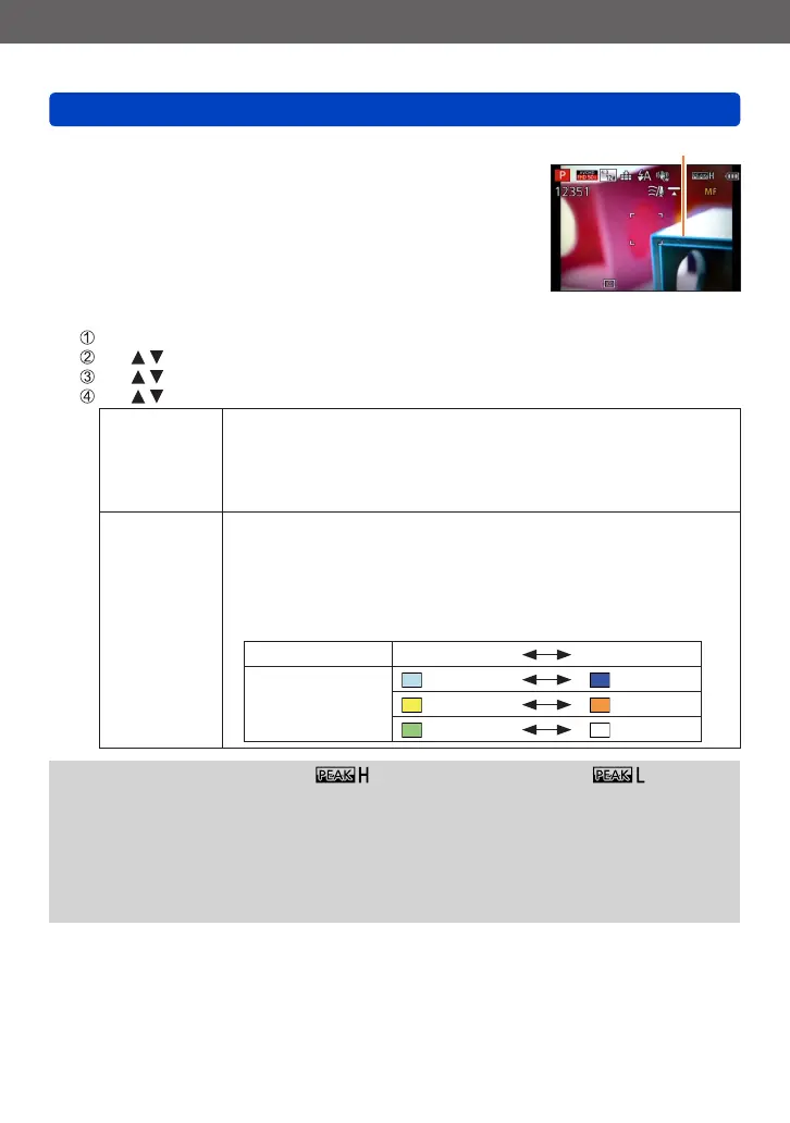 When [Fn Button Set] (→134) is set to [Peaking], you can switch the setting in the