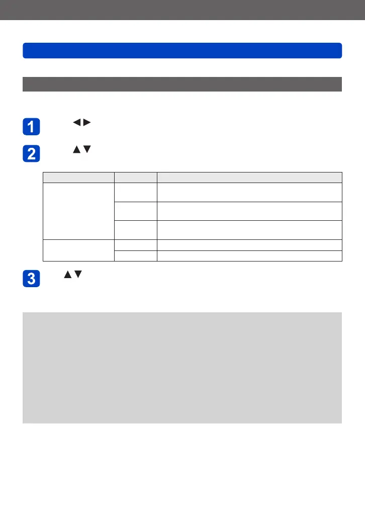• For the setting procedures of the menu. (→61)