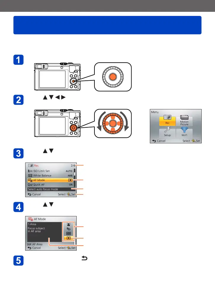 Example: Changing [AF Mode] in the [Rec] menu in [Program AE] Mode