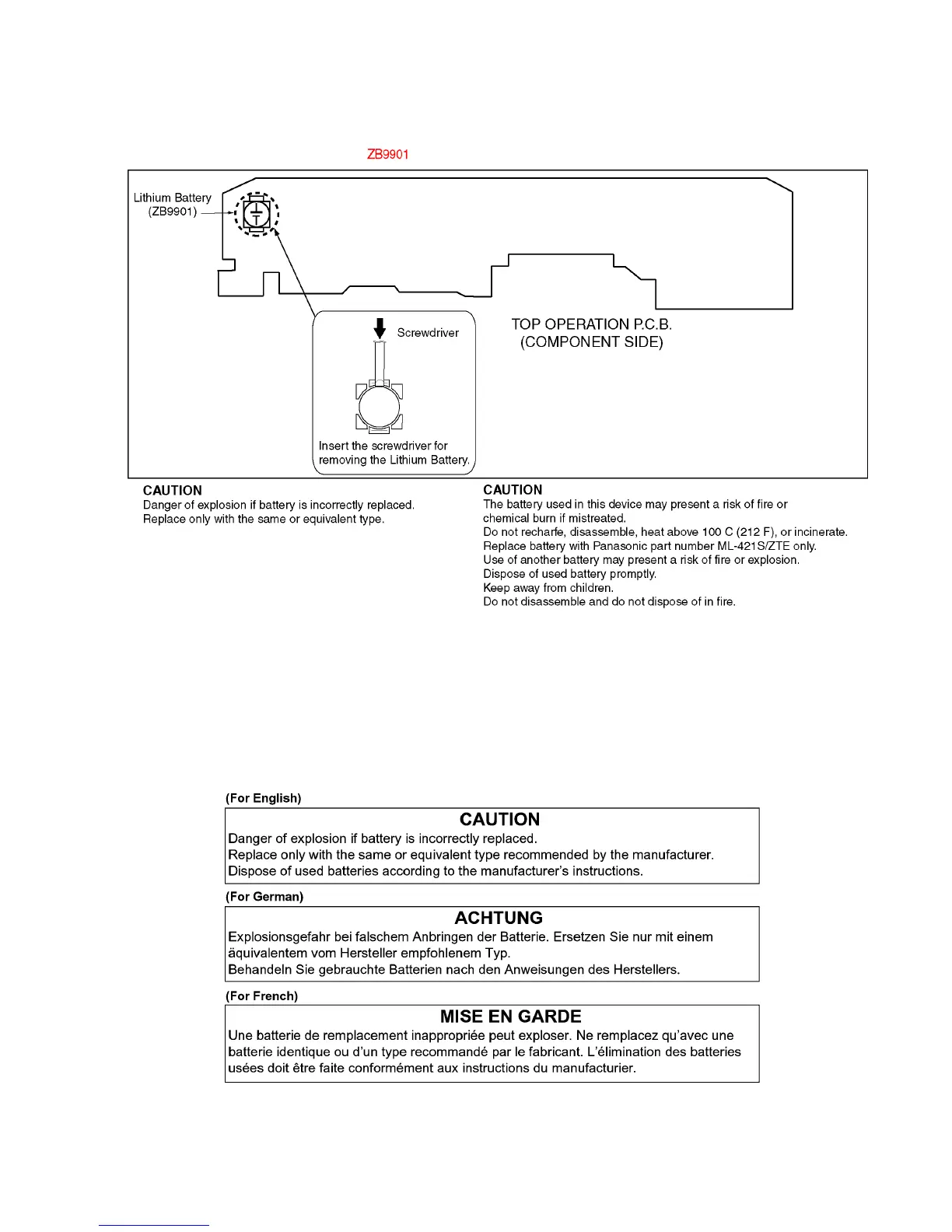 2. Remove the Lithium battery (Ref. No. at component side of Top Operation PCB) and then replace it into new one.