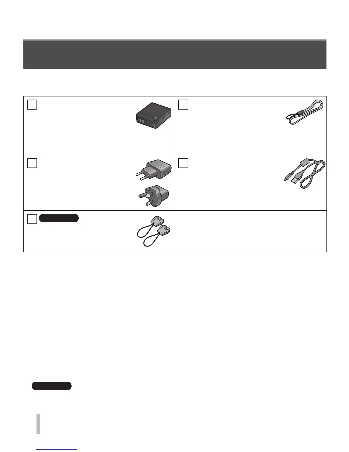 Check that all the accessories are supplied before using the camera. Part numbers