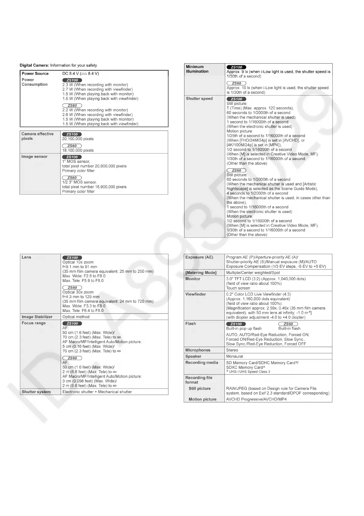 The following specification is for DMC-ZS60P/PP, ZS100P/PP.