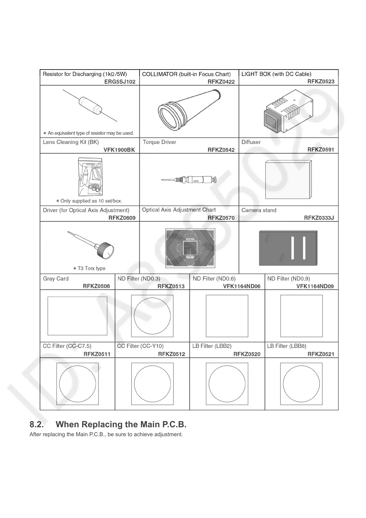 Panasonic DMC-TZ80EB - 8 Service Fixture & Tools; Service Fixture and Tools; When Replacing the Main P.C.B