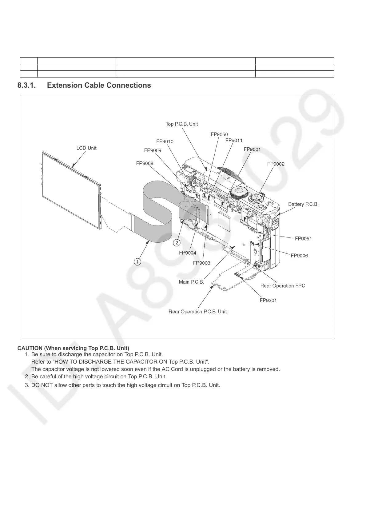 1. Be sure to discharge the capacitor on Top P.C.B. Unit.