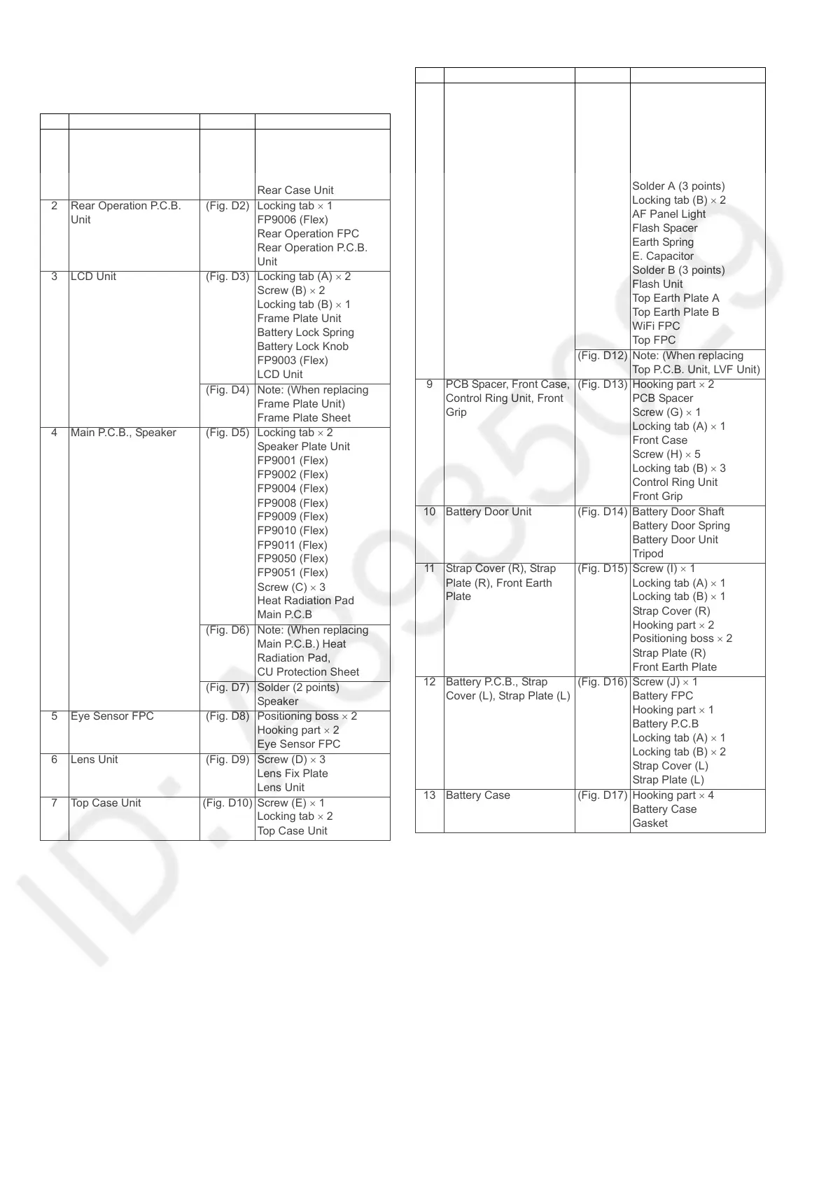 1 Rear Case Unit (Fig. D1) Screw (A) 6