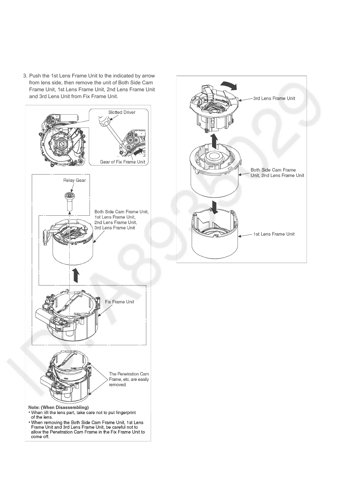 2. Remove the 1st Lens Frame Unit and 3rd Lens Frame
