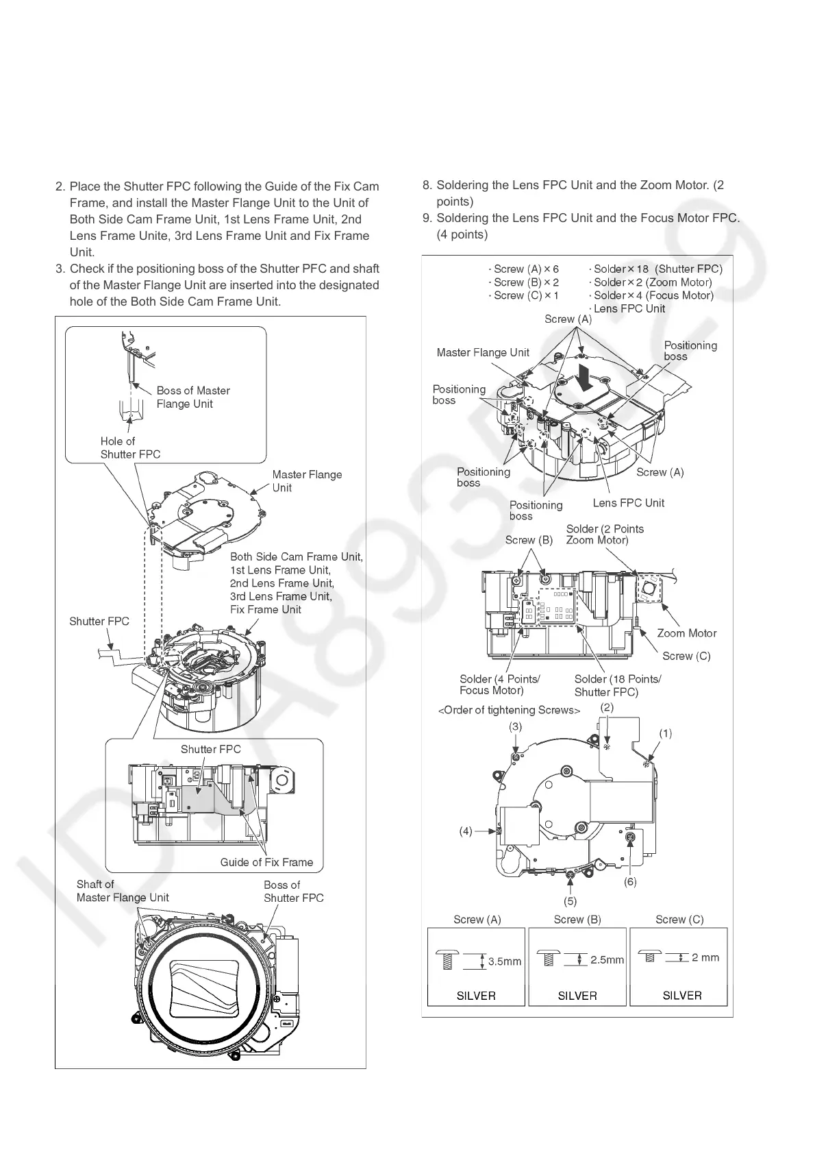 7. Soldering the Lens FPC Unit and the Shutter FPC. (18