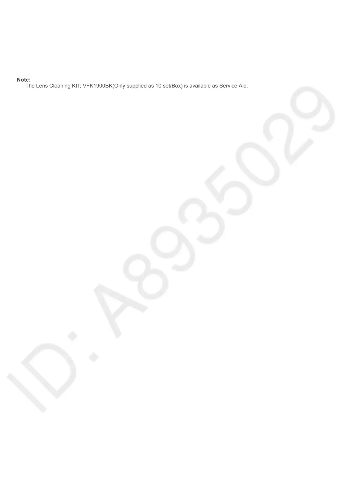 The Lens Cleaning KIT; VFK1900BK(Only supplied as 10 set/Box) is available as Service Aid.
