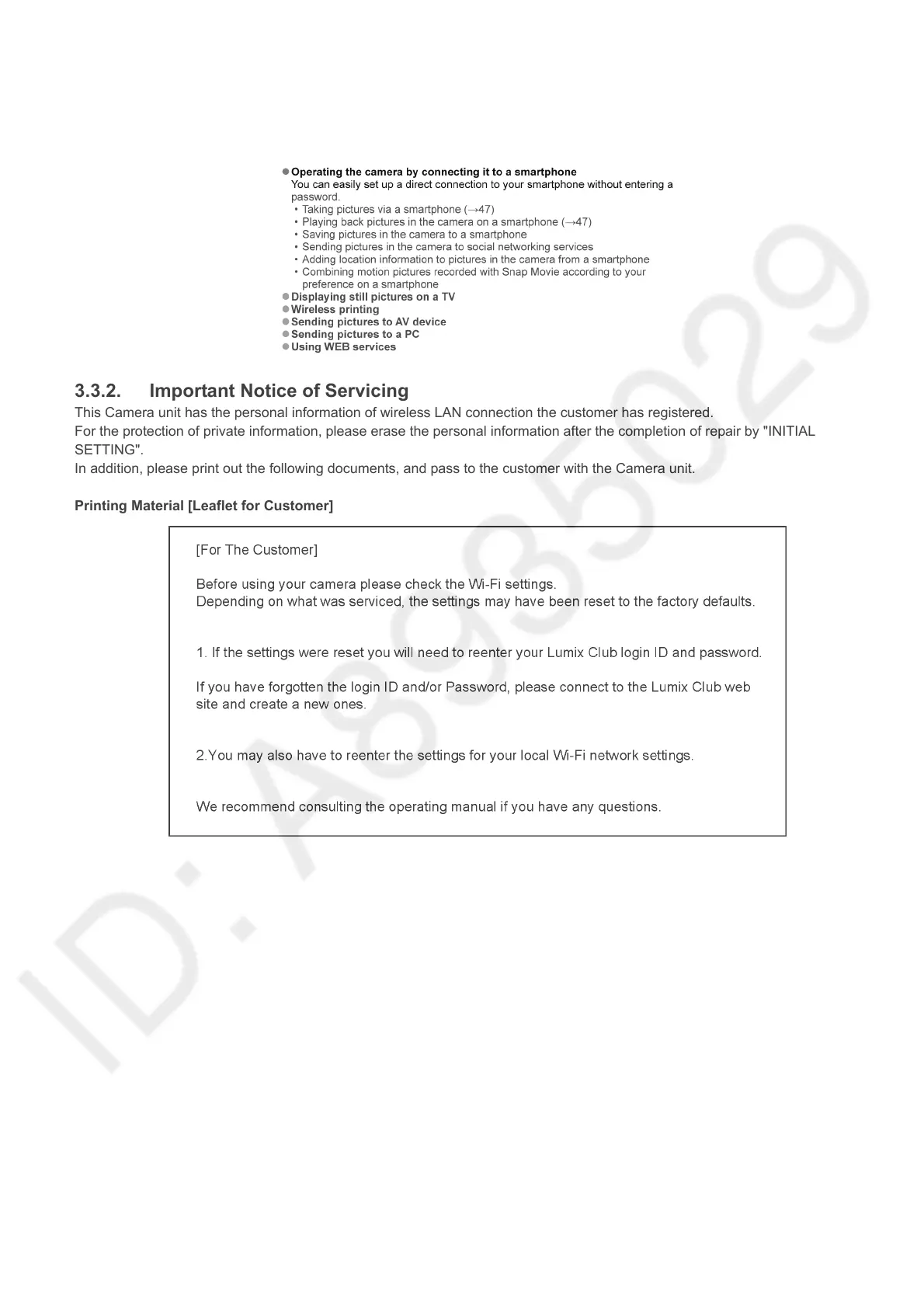 This Camera unit has the personal information of wireless LAN connection the customer has registered.