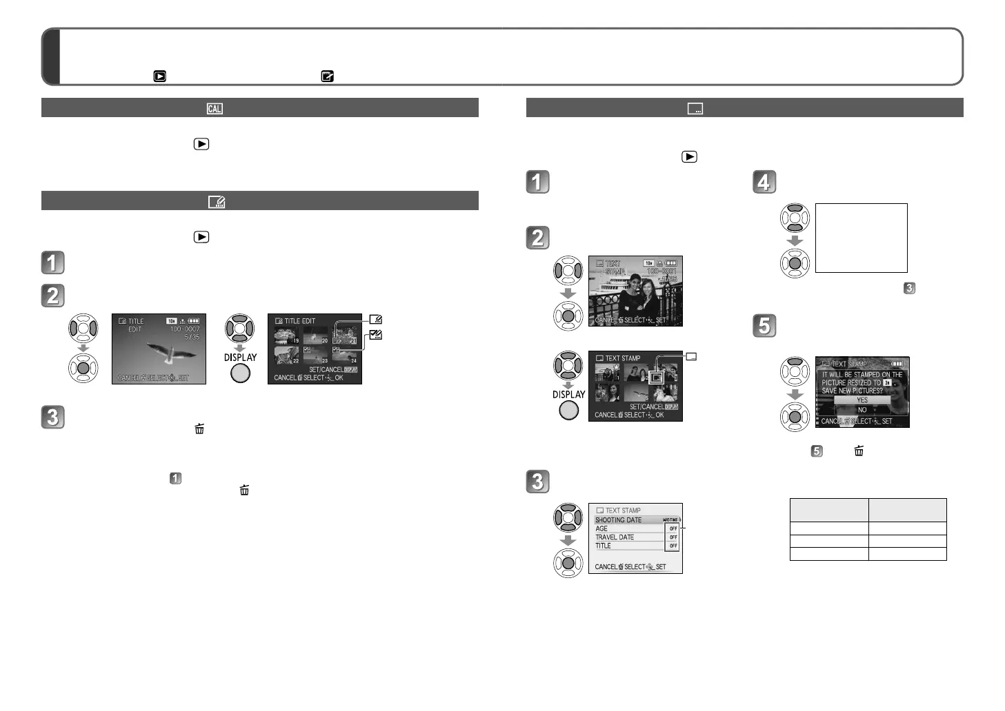 Stamp recording date or text registered in the [BABY] and [PET] scene modes, [TRAVEL