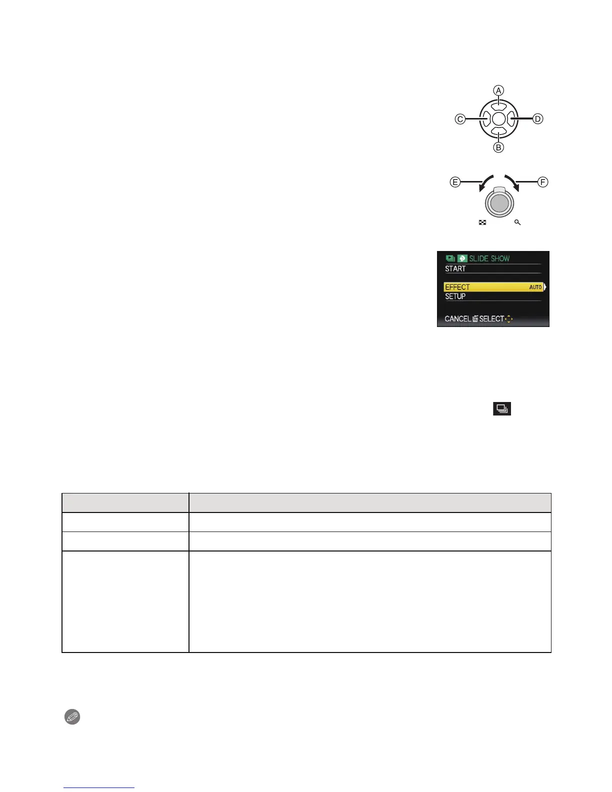 • [EFFECT] is fixed to [OFF] during motion pictures only, and during a slide show of [ ] in
