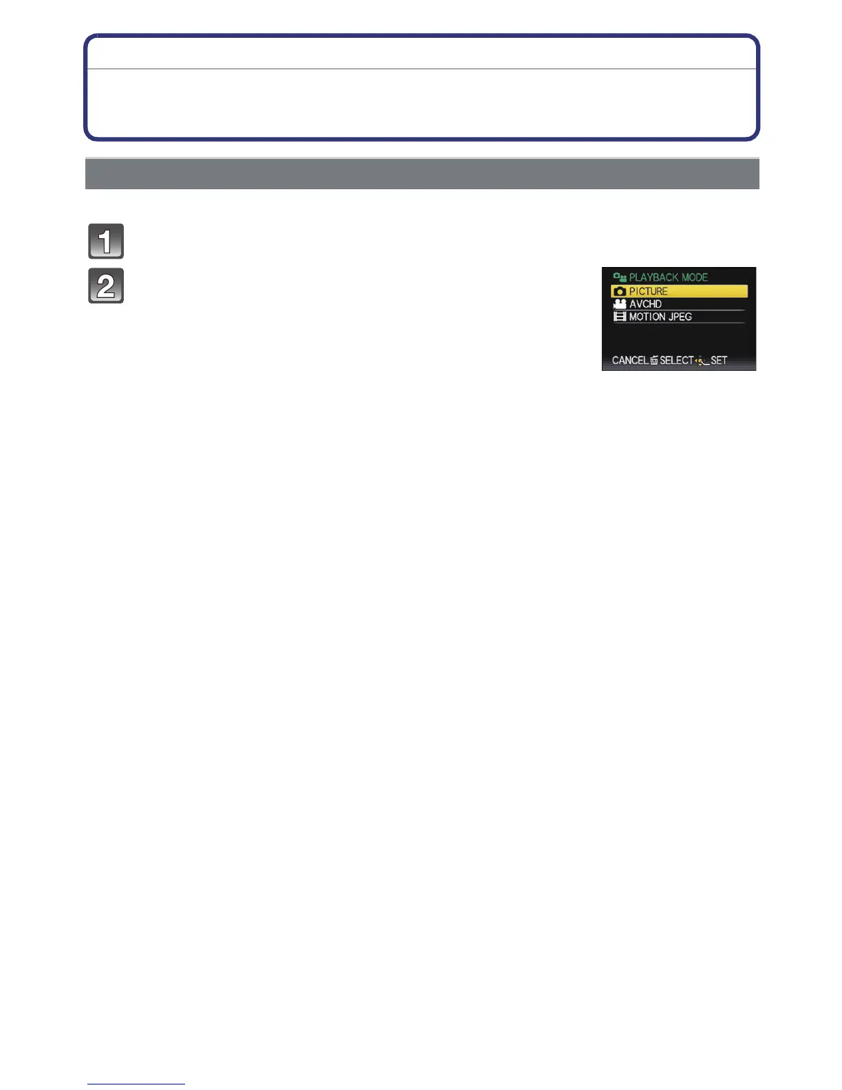 Playback in [PICTURE], [AVCHD], or [MOTION JPEG] can be selected.