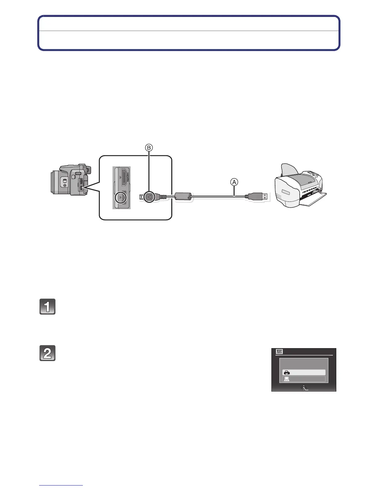 Connect the camera to a printer via the USB connection cable A