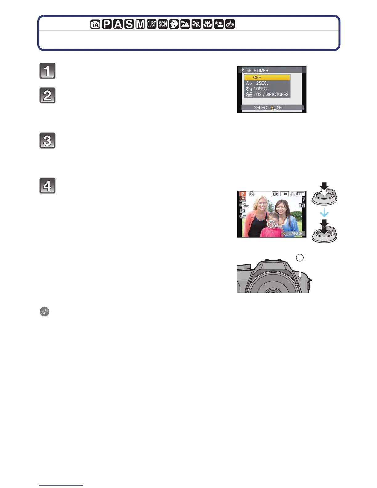 • Setting of the Self-Timer cannot be performed when recording motion pictures.
