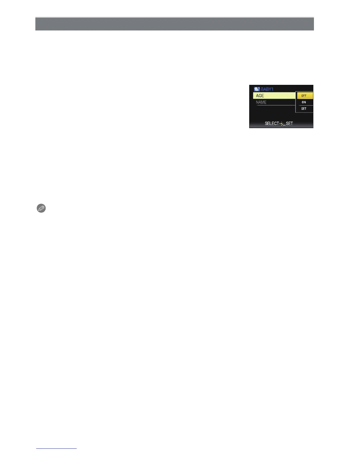 • If [AGE] or [NAME] is set to [OFF] even when the birthday or name has been set, the age or