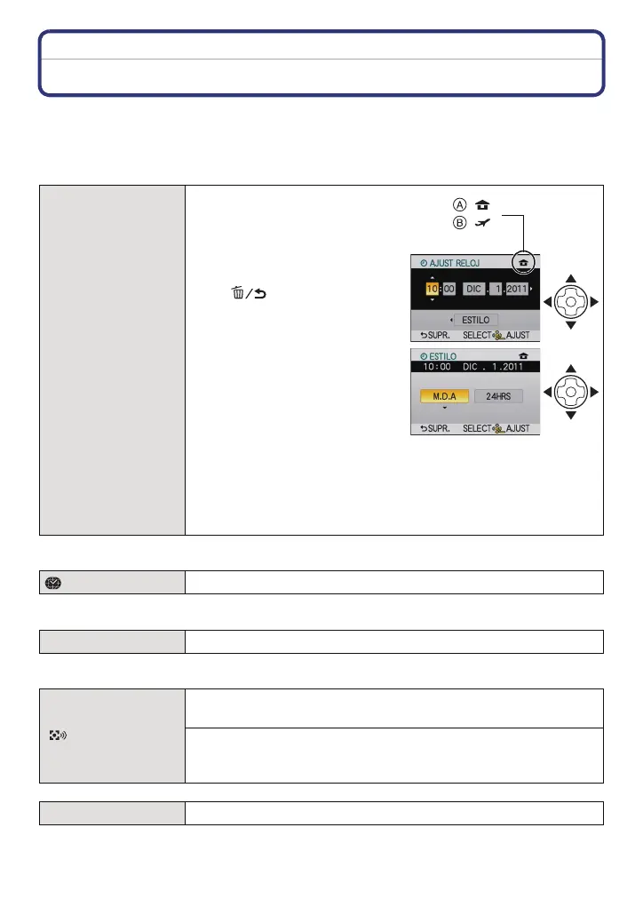 Consulte “Ajuste de la fecha/hora (Ajuste del reloj)” en P28 para obtener otra información.