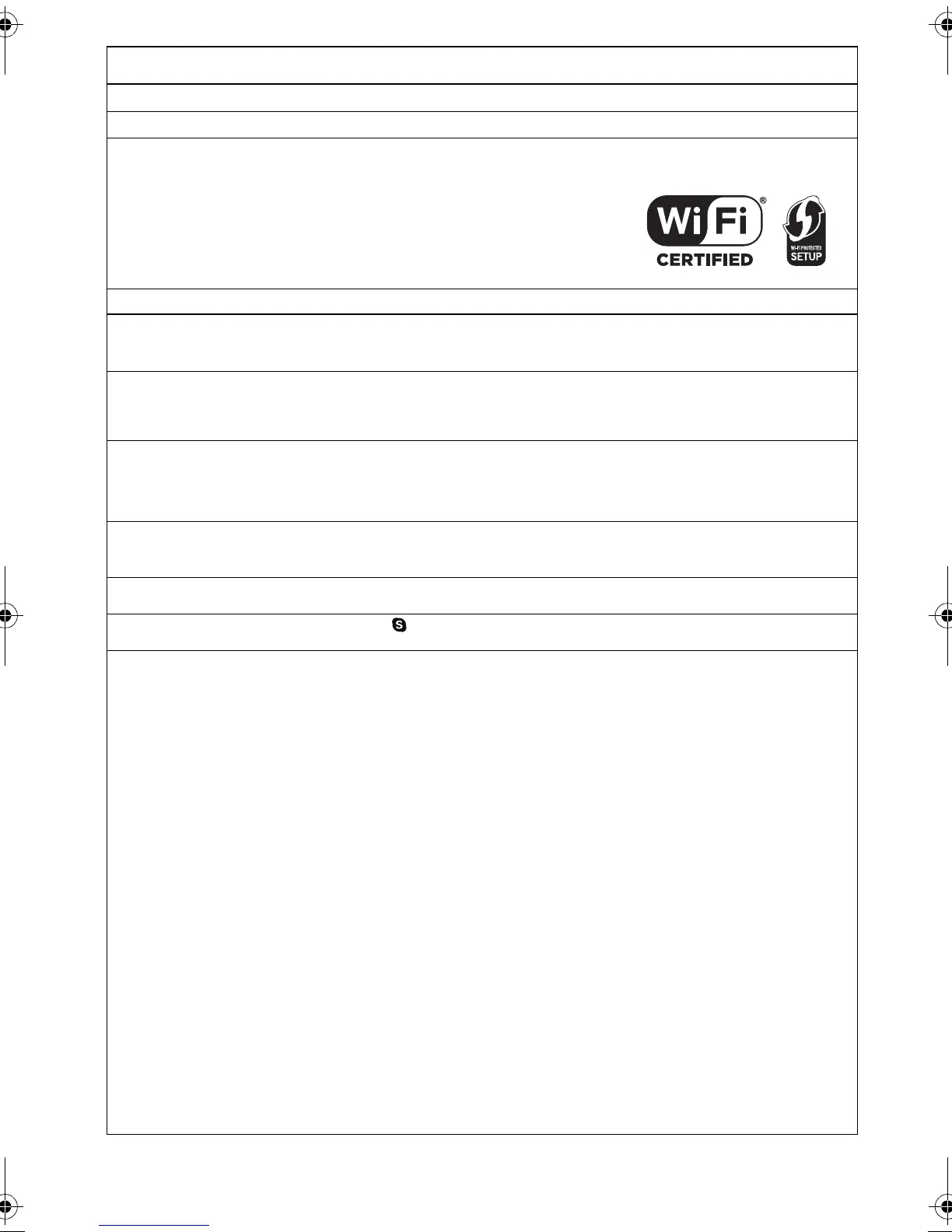 “Wi-Fi”, “Wi-Fi Protected Setup”, “Wi-Fi Direct”, “WPA” and “WPA2” are marks or registered marks of the Wi-Fi Alliance.