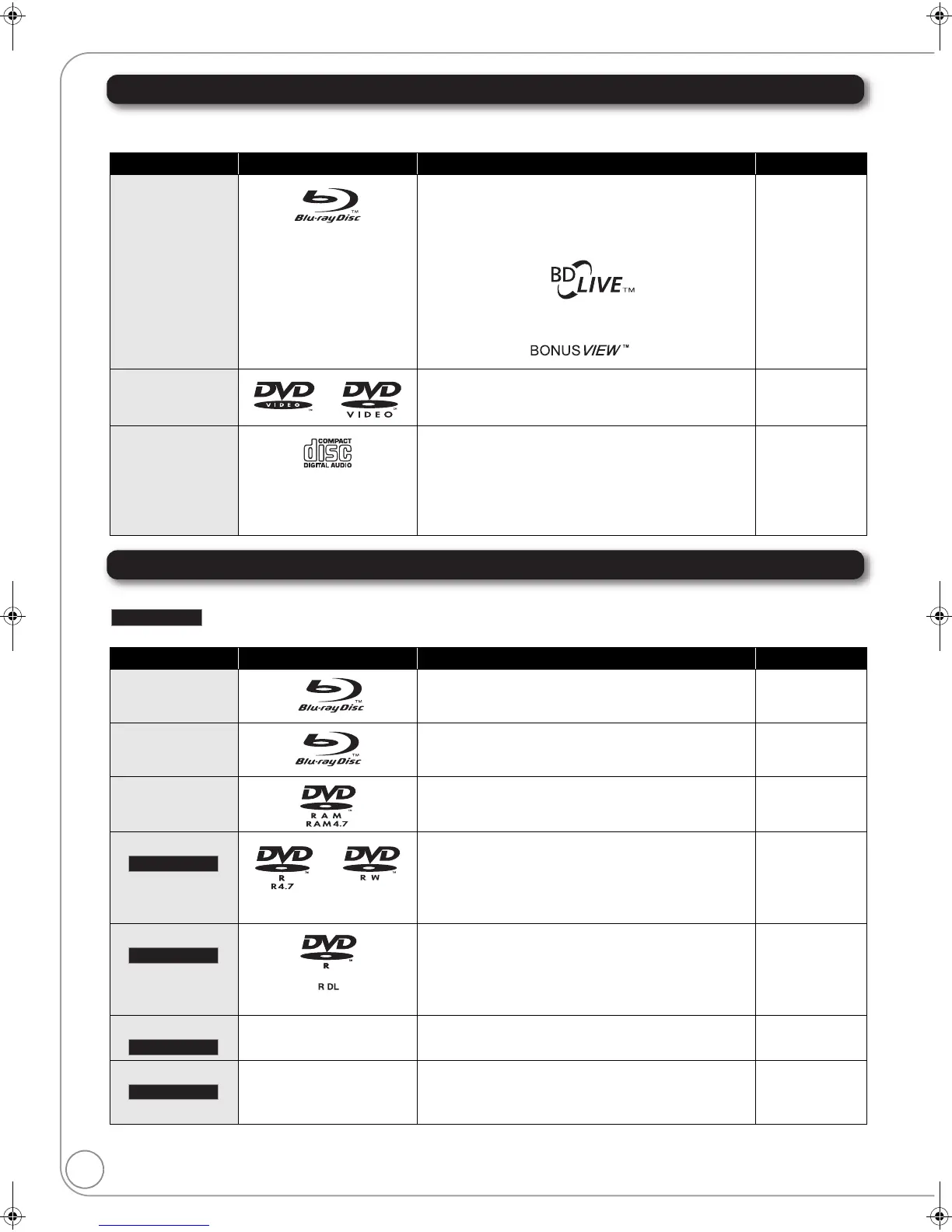 ≥It may not be possible to play the above discs in some cases due to the type of discs, the condition of the recording, the recording method and